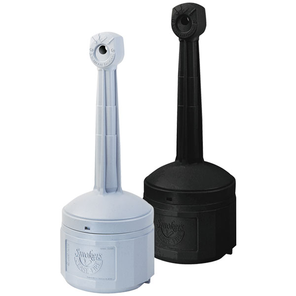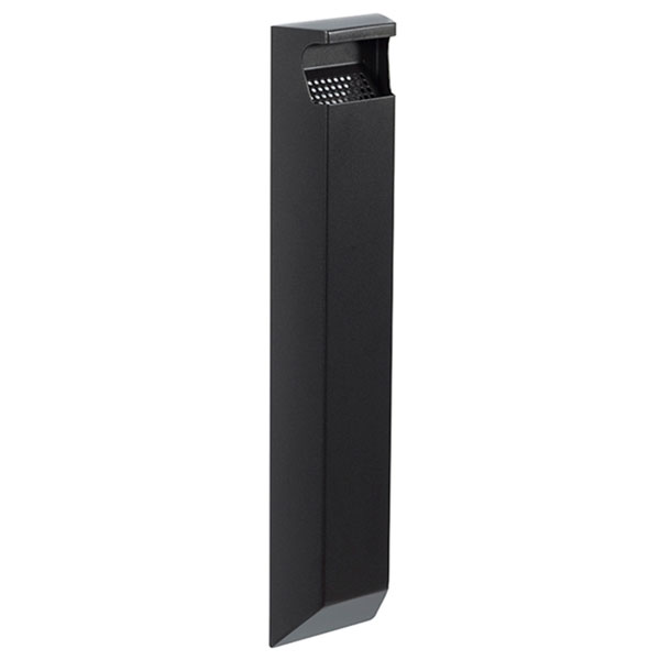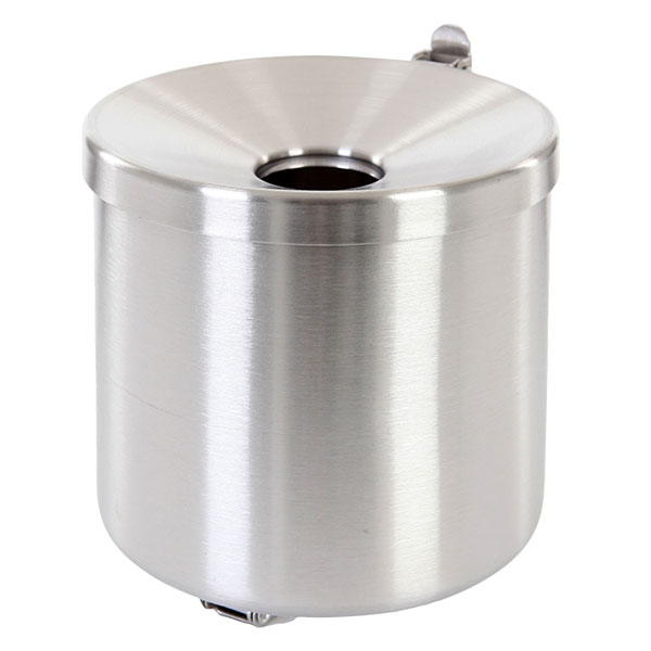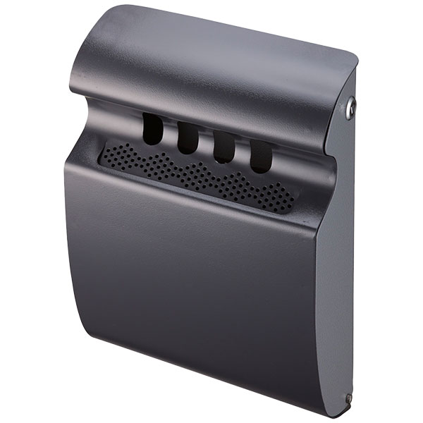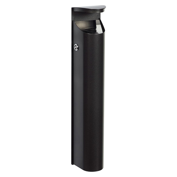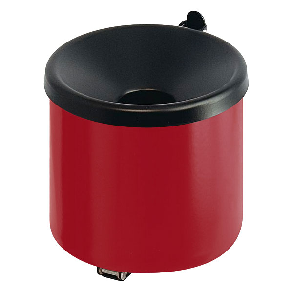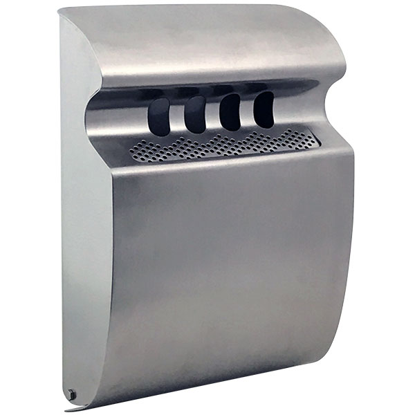 Robust askebeger i pulverlakkert stål med brakett for 4‑punkts veggmontering og konisk lokk som effektivt slukker brennende sigarettsneiper. Veggbraketten har en vippefunksjon for enkel tømming.