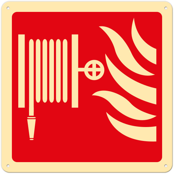 Brannskiltet tilfredsstiller krav i henhold til DIN 67510 og gjeldene EU‑krav om størrelse, farge, materiale og etterlysningsgrad.