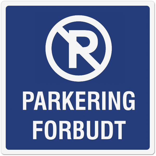 Forbudsskilt: "Parkering forbudt – Overtredelse kan medføre …"