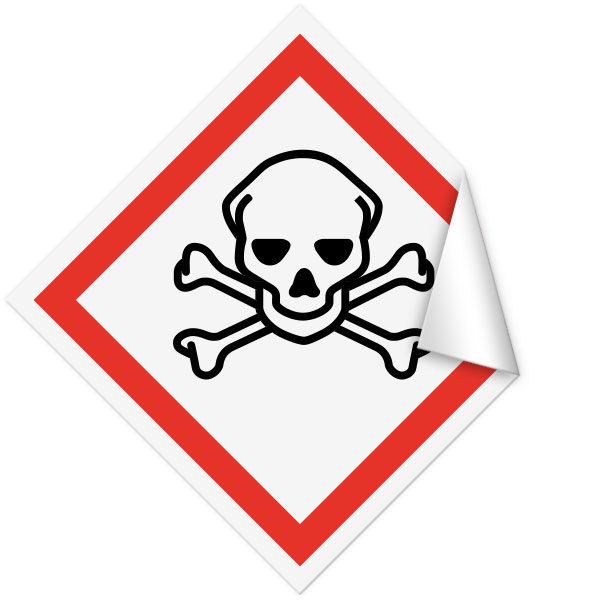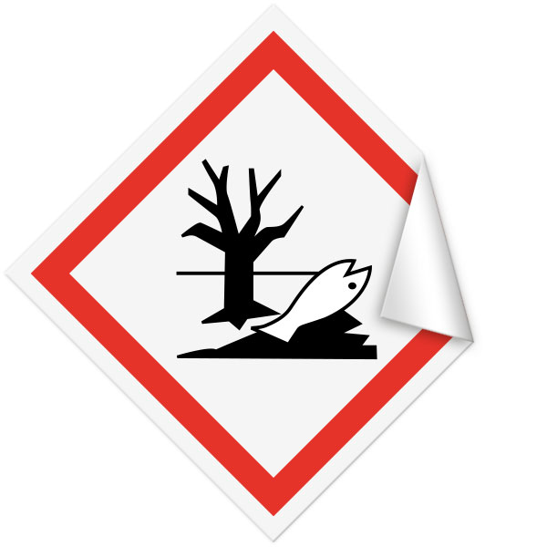 Klistremerke med symbolet for kronisk helsefare (GHS08) i henhold til globalt system for klassifisering og merking av farlige kjemikalier (CLP).