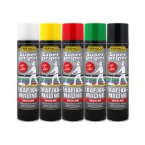 Trafikkmaling er en hurtigtørkende, drøy og slitesterk markeringsspray for oppmerking på asfalt og betong med Super Striper merkemaskiner og spraypistoler. Malingen har høyt UV-bestandig pigmentinnhold og kan brukes både utendørs og innendørs.