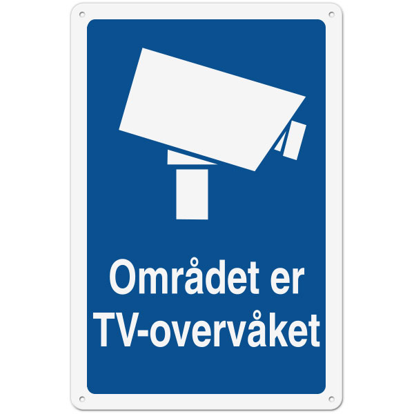 Opplysningsskilt: "Området er kameraovervåket", metall, 20 x 30 cm