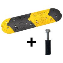 For ekstra holdbar installasjon anbefaler vi vår modulære fartshump med bolter og skinner. Skinnene reduserer belastningen på boltene og forsterker fartshumpen slik at den tåler tyngre trafikk.