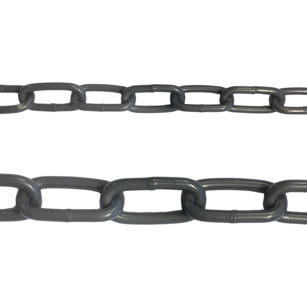 Skjøtelenke i galvanisert stål. Pulverlakkert grå og UV‑bestandig. Brukes til å hekte kjetting på kjettingstolper.