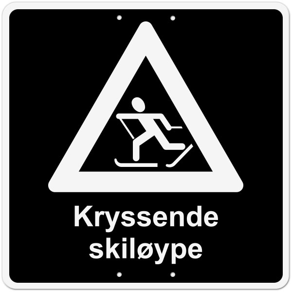 Skilt med symbol og tekst som varsler om kryssende skiløype.