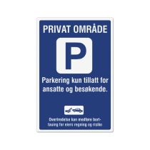 Vi har flere forskjellige parkeringsskilt med underskilt til ulike behov! Parkering forbudt skilt med informasjon om bortauing og privat parkering skilt er noen parkeringsskilt med underskilt vi tilbyr.
