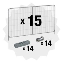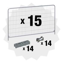 PAKKETILBUDPakketilbud: 15 byggegjerder med hjørneforsterkninger, 14 føtter og 14 klammerTilbudsprisFørPå lager -