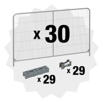 PAKKETILBUDPakketilbud: 30 byggegjerder med hjørneforsterkninger, 29 føtter og 29 klammerTilbudsprisFørPå lager -