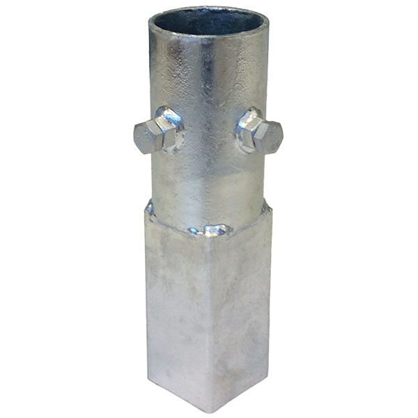 Adapter i galvanisert stål som gjør det mulig å plassere foten på baksiden av gjerdet og dermed unngå obstruksjoner på forsiden. Trafikkgjerdene settes på de ytterste rørene, mens universalfoten settes på det midterste.