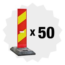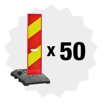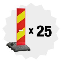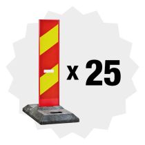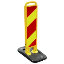 En standard hindermarkering for bruk ved veiarbeid, er som regel laget av stiv plast med en fot av resirkulert gummi. Ved eventuell påkjørsel er det som oftest kun skiltet som tar skade. Av den grunn tilbyr vi skilt og føtter hver for seg, da det i slike tilfeller kun er nødvendig å erstatte de ødelagte skiltene. Alternativt kan vi anbefale vår sammenleggbare hindermarkering som har leddet skilt, slik at det gir etter ved påkjøring og unngår skade.